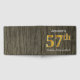 This guest book design features the ordinal number "57th" with a faux/imitation gold-like appearance. It also features a customised name, and a rustic faux wood appearance background. It could be used at a party for somebody celebrating their fifty seventh birthday. [~Z0000053]
