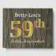 This guest book design features the ordinal number "59th" with a faux/imitation gold-like appearance. It also features a custom name, and a rustic faux wood look background. It could be used at a party for somebody celebrating their fifty ninth birthday. [~Z0000053]