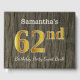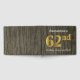 This guest book design features the ordinal number "62nd" with a faux/imitation gold-like appearance. It also features a personalised name, and a rustic faux wood appearance background. It could be used at a party for somebody celebrating their sixty second birthday. [~Z0000053]