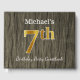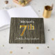 This guest book design features the ordinal number "7th" with a faux gold-like appearance. It also features a customised name, and a rustic faux wood appearance background. It could be used at a party for somebody celebrating their seventh birthday. [~Z0000053]