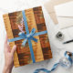 Merry Christmas Tree Pattern Faux Gold Brown Christmas Tree Baubles Pattern with custom text Rustic Christmas Gift Wrapping Paper