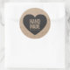 Rustic style sticker with the word "Handmade" in bold font and a stylish script for your name or store name in brown over a grey heart against a kraft like pattern background. Use this "Handmade" sticker for labelling and packaging your handmade goods.