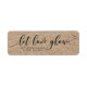 This stylish rustic wedding favour label features the words "let love glow" in dark grey script against a kraft like pattern background. It's great for labelling your wedding favour gifts.
