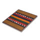 This rustic western design features faux leather interspersed with colourful ethnic stripe patterns in bold red, green, gold yellow, and navy indigo blue with black and white accents, similar colours and designs to those in Mexican talavera tiles, perfect for creating a comfortable, casual look in your home.