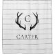 Rustic Faux Shiplap Antler Monogram | Farmhouse Shower Curtain
