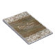 Elegant white ornate vintage girly lace over rustic faux wood background. Customisable wedding template