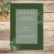 Introducing our enchanting vertical wedding details card, where elegance meets nature in perfect harmony. A soft, feathery oval frame adorned with lush forest greenery, ivy, ferns, and more, beautifully set against a mesmerising dark emerald green background. Capture the essence of a romantic woodland escape with this stunning invitation that will leave your guests breathless. The intricate details of the feathery foliage evoke a sense of natural beauty, while the deep emerald hue adds an element of sophistication and allure. It's designed to set the tone for your special day, beckoning your loved ones to a celebration immersed in lush greenery and the serenity of nature. Each element of the design is carefully curated to create a harmonious visual experience, leaving a lasting impression on your guests. This design embodies the essence of romance and natural beauty. It serves as a wonderful keepsake for your guests, a tangible reminder of the magic they will witness on your wedding day. Choose this design to set the stage for a celebration that intertwines elegance and nature seamlessly. Let us help you create an unforgettable first impression, as you embark on a journey of love and joy. This card is part of the Rustic Fern Green Foliage Emerald Green wedding suite of cards.
