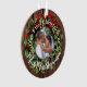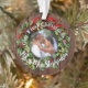 Holly Wreath "Our First Christmas as Mr and Mrs" Wedding Photo Beautiful keepsake gift, with photo and custom text on back. Ornament in red and green holiday Christmas wreath with your custom photo and rustic wood plank background! Add your personalised message on back as well. Vibrant and colourful beautiful keepsake family christmas ornament. Share the Holidays with these personalised ornaments, sure to be a great conversation starter.