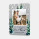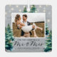 Step into a winter wonderland with our rustic holiday newlywed ornaments! Featuring the charm of a grey wooden background, twinkling string lights, and enchanting watercolor Christmas trees. Customisable with a photo, the saying "our first christmas as mr & mrs", plus the couples names, and the wedding date.
