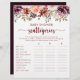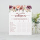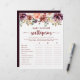 This rustic floral baby shower scattegories game is a perfect a fun activity for a summer baby shower. The design features burgundy, pink and blush watercolor flowers with green leaves in a brownish stained background.