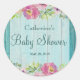 Rustic Floral Blue Wood Baby Shower Party Stickers
