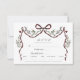 This charming RSVP card features a rustic floral bow and delicate wings illustration, perfect for a whimsical wedding. The design includes space for guests to indicate their meal choice (beef, chicken, fish, vegetarian, vegan) and to add any allergies or special requirements on the back. The phrase 'Kindly accept' and 'Regretfully decline' are elegantly printed, guiding your guests' responses. It is designed to complement a wedding theme that is natural, vintage, or bohemian, adding a personal touch to your special day. Ensure all your guests' needs are met with this thoughtfully designed response card, making your wedding planning seamless and beautiful. Please respond by August 1st to finalize your guest count.