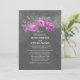 Vintage wedding invitation with purple roses and small branches wreath. Chalkboard invite perfect for romantic garden wedding
