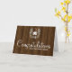 Congratulate your friends or family on their new home or apartment with this adorable greeting card! It contains a wood photo background. On top of the background is a house with pink hearts coming out of the chimney. The house is surrounded by a wreath of flowers.