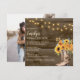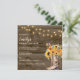 Invite guests to celebrate in country-chic style with this rustic bridal shower invitation. Featuring a barn wood background, glowing string lights, and a watercolor bouquet of sunflowers tucked into a pair of cowgirl boots, this design is perfect for western, farm, or outdoor themes. Personalise with bride’s name, date, and location for a truly special event.