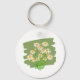 Rustic Floral Design on Green Background Key Ring