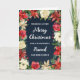 Merry Christmas for friend and her family card with rustic watercolor flowers and navy blue background.