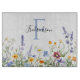 Enhance any culinary space with this elegant and durable glass cutting board. The design features a vibrant watercolor wildflower meadow paired with a sophisticated monogram and script typography. It serves as a high-intent closing gift for realtors looking to leave a lasting impression on new homeowners.