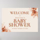 An elegant fall baby shower welcome sign featuring pretty terracotta rustic floral lettering. Designed by Thisisnotme©