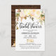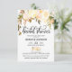 Simply elegant floral rustic bouquet design in rustic wood watercolor (watercolour) green greenery, blush pink, beige, champagne, vanilla, peach, orange white flower roses / peony on white background and black letters. Delicate wedding bridal shower invitations for that spring or summer theme. Perfect for fall / autumn cards. Back of card has future mrs.name .