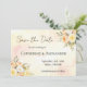 Announce your special day in style with this elegant watercolor floral save the date card. Featuring soft pastel watercolor washes and peach and yellow florals, this romantic design sets the perfect tone for your upcoming wedding celebration. Click on 'Personalise' to display your names, wedding date, and location. Ideal for rustic chic, country style or botanical-themed weddings.