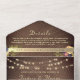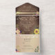 Announce your big day in style with this elegant rustic wood all-in-one wedding invitation. Featuring watercolor florals, vibrant sunflowers, and romantic string lights, this design blends modern charm with rustic warmth. The back includes space for your custom photo, making it a personal keepsake for your guests. Perfect for fall, barn, or outdoor weddings, it includes your wedding details and built-in RSVP for easy planning.
