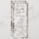 Rustic weathered wooden boards with white floral print wedding invitation combination with rsvp attached.