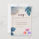 Elegant watercolor RSVP card featuring rustic blue leaves, floral accents, and a gold border. Designed to match the Rustic Floral Wedding Invitation suite. Customize instantly with guest names, response options, and return details. Perfect for autumn, botanical, or nature-inspired weddings.
