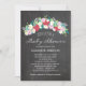 Perfect for a country style Baby Shower. A Rustic Spray of flowers in colours of Candy Red, Pinks, Teals and White Daisy wildflowers with a Chalkboard / Blackboard Background. If you have any questions on this design or want a colour change in the flowers to match your wedding please email me paula@labellarue.com Don't forget to pick your favourite cardstock to have it printed on!