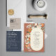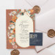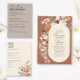 A unique design for a unique couple. The design features delicate flowers illustration in burnt orange and white with some greenery over a terracotta background, great for summer or early fall wedding.