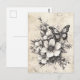 This elegant postcard features a graceful butterfly resting among hand-drawn flowers, all set against a softly weathered brown background that mimics the texture of aged parchment. The rustic tones and vintage aesthetic evoke the charm of old botanical journals and forgotten letters, making it a nostalgic piece full of warmth and natural beauty. Perfect for autumn themes, garden lovers, nature-inspired décor, or anyone drawn to vintage cottagecore vibes. A meaningful design for birthdays, anniversaries, or simply celebrating the timeless beauty of nature.