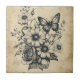 Rustic Flowers and Butterfly - Aged Paper (6) Tile