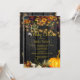 Beautiful rusty orange and dark burgundy autumn fall flowers and pumpkin borders with strings of golden twinkle lights over a dark brown barn wood background making a charming elegant baby shower party invitation with a trendy handwriting gold typography script. +++++++++ Easy to personalise with your details! Suitable for traditional autumn fall rustic | country | farmhouse | outdoor backyard boy or girl or gender reveal baby shower.
