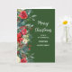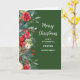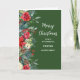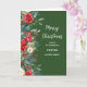 Merry Christmas for friend and his family card with rustic country design, forest green background and winter foliage with poinsettias.