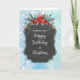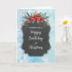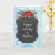 Happy christmas birthday Christmas card with rustic country design and winter foliage with poinsettias.