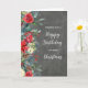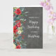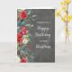 Happy christmas birthday Christmas card with rustic country design and winter foliage with poinsettias.
