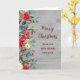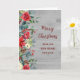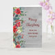 Merry Christmas change of address Christmas card with rustic country design and winter foliage with poinsettias.