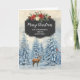 Merry Christmas for friend and his family card with rustic winter watercolor snowy forest and deer.