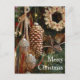 A photo of a rustic theme Christmas tree with acorn, pine cone, wreath and star ornaments. The colours are rich beautiful tones of gold, brown and bronze. The front says Merry Christmas and the inside says Wishing you much joy and happiness this Christmas season. Personalise the front and inside with your own message if desired. This holiday ornament card is great for conveying the festivity of Christmas. They can also be used for an ornament exchange party.