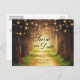 Rustic Forest Path String Lights Save the Date Wedding Engagement Announcement Postcard