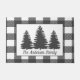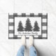 Rustic forest trees grey and white buffalo check plaid doormat. This mat can be personalised with your family's name!
