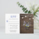 Rustic RSVPs featuring mason jar string lights over a barn wood background with a sweet bundle of blue forget-me-nots tied with a blue ribbon. If you would like this design on a matching product, or need help, please contact me through my store. There is a matching invitation available.