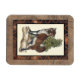 This rustic print illustrates a fox in front of a pine tree. The colours are in the soft pastel range and the framing of the picture has traditional motives in the brown gama. This designs would be a perfect addition to your country house decoration.