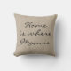 This rustic throw pillow has "Home is where Mum is", written on it in a flowing freehand script on an illustrated burlap background, making it the perfect gift for mum on Mother's Day, her birthday, or other special occasion.