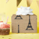 This elegant, rustic Parisian design features the Eiffel Tower in black arranged in a chic pattern, and a burlap look pattern as the background. Very French vintage!