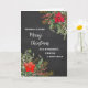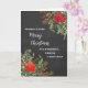 Merry Christmas for friend and her family card with rustic watercolor greenery and vintage chalkboard pattern.