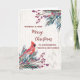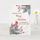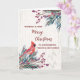 Merry Christmas for friend and his family card with rustic watercolor greenery and cardinal and vintage wood pattern.