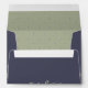 Hand drawn ornate floral design on dark navy background, and pretty floral pattern liner, perfect for outdoor garden wedding, country, rustic wedding; or a vintage wedding, winter or summer. Natural colour scheme, sage green, dark navy and pale beige. Custom return address on envelope for your convenience.