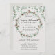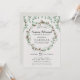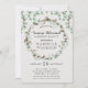 Rustic garden botanical greenery foliage wreath retirement party invitation featuring eucalyptus and cotton overlay on a cream faux linen texture background. Elegant open face type contrasted with a flowery style script typography.