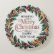 Celebrate the season with our festive "Wishing You A Merry Christmas And A Happy New Year" Round Pillow! This vibrant design features a charming watercolor wreath adorned with classic holly, bright red berries, golden stars, and a sweet gingerbread friend. It's a joyful and welcoming accent, perfect for spreading holiday cheer and warm wishes throughout your home during the festive season.